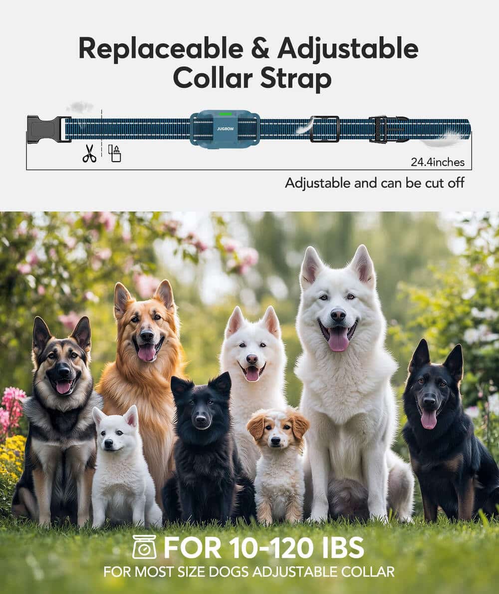 Upgraded adjustable strap ensures a secure fit for necks 5-24.4 inches, ideal for all breeds.