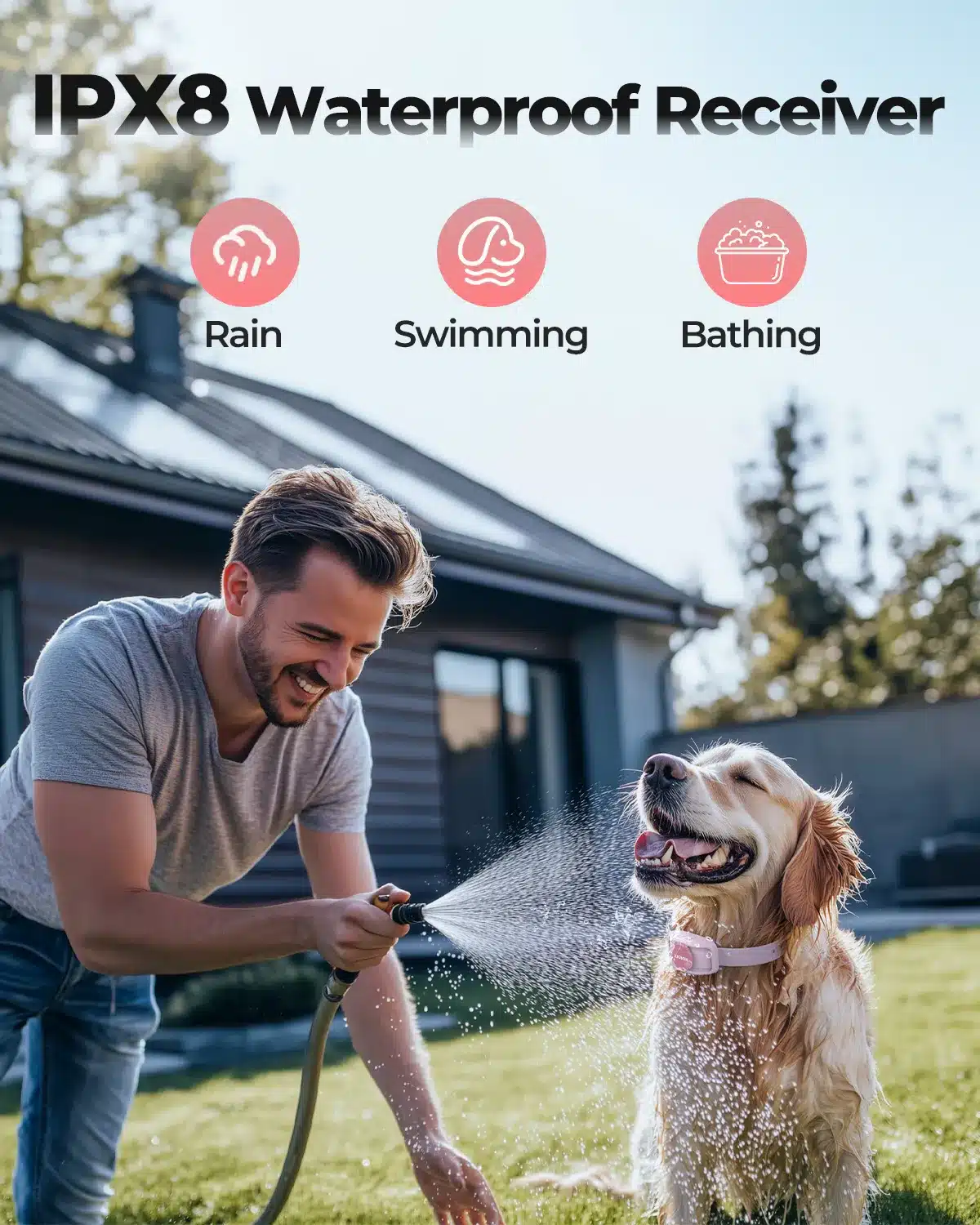 Take it outdoors in all conditions—rain, mud, even swims.IPX8 waterproof receiver guarantees uninterrupted training.