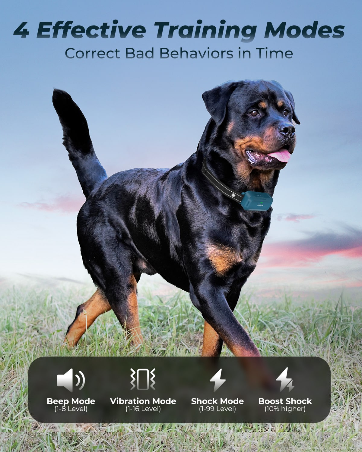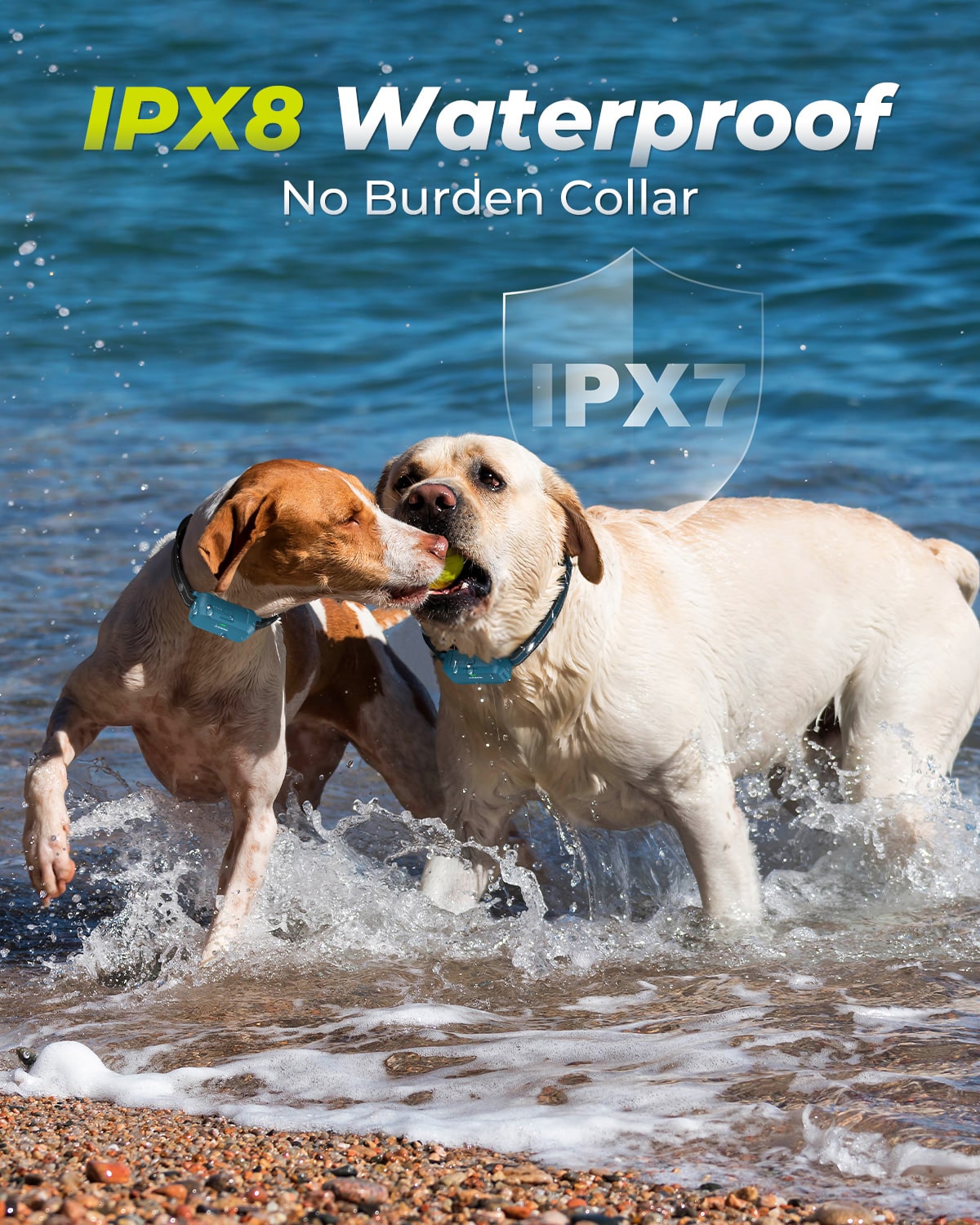 IPX8 waterproof collar ensures uninterrupted performance in any condition.